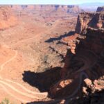 Bis zum Parkeingang und dem Besucherzentrum waren es noch einige Kilometer zu fahren. Danach fuhren wir noch ein weiteres Stück zum Aussichtspunkt der Shafer Trail Road.