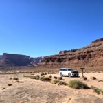 Allerdings standen wir vor einem Schild, das besagte, dass die White Rim Road nur mit Genehmigung befahren werden darf … Hatten wir nicht.