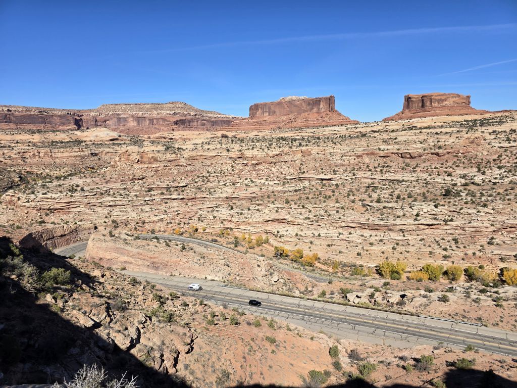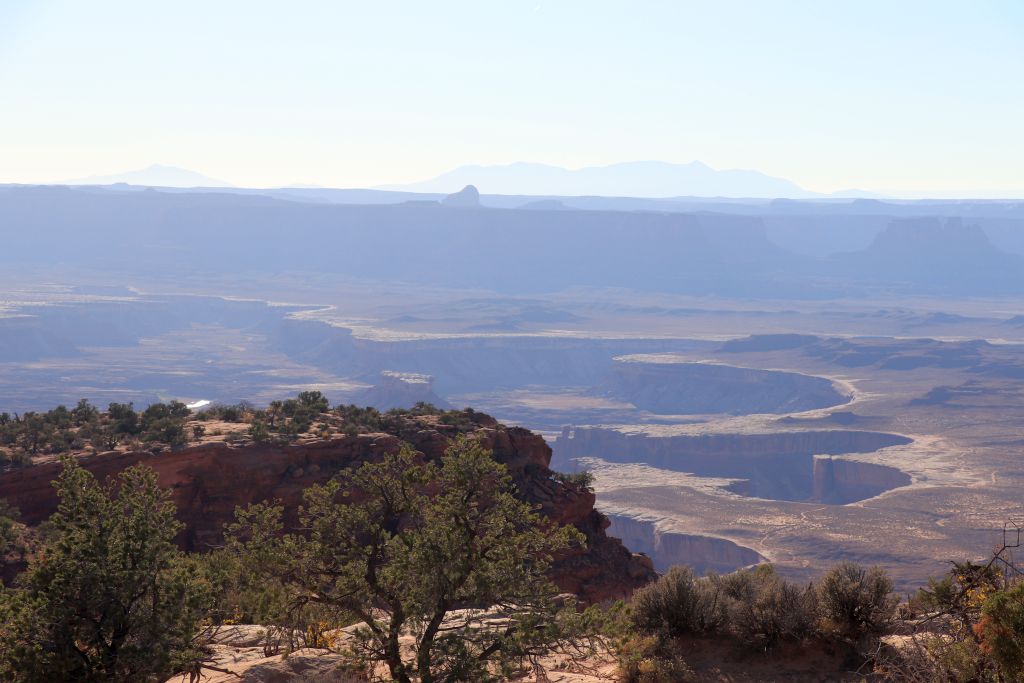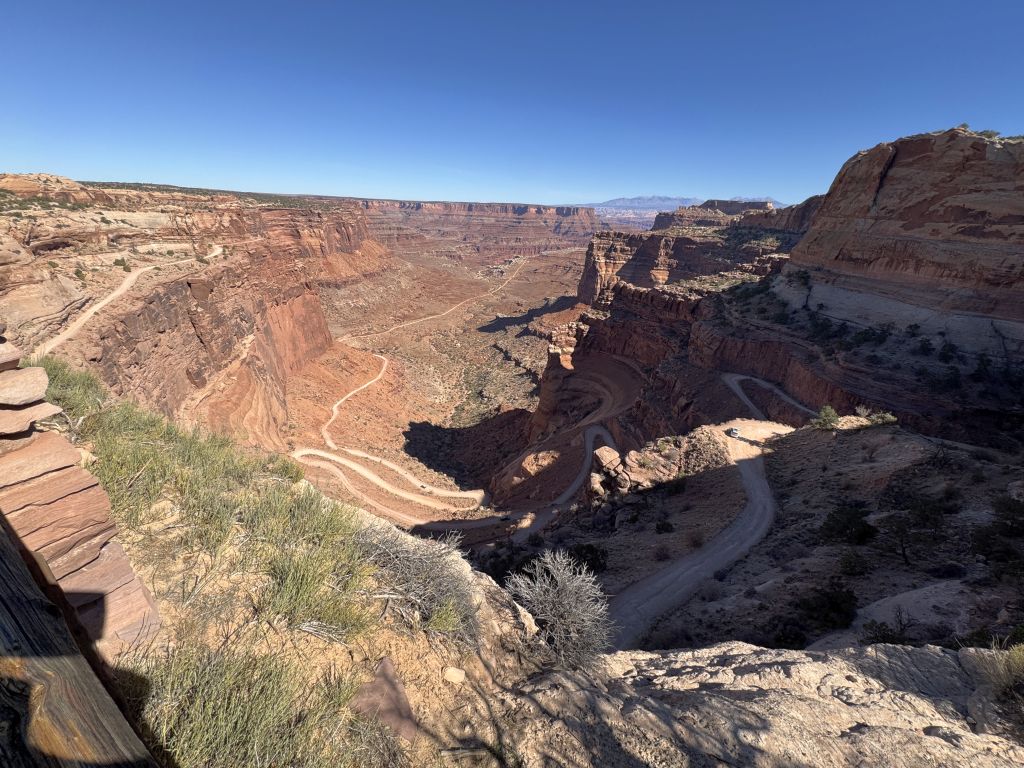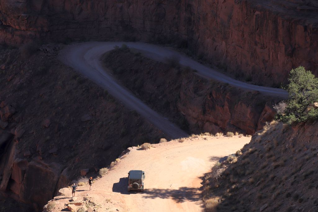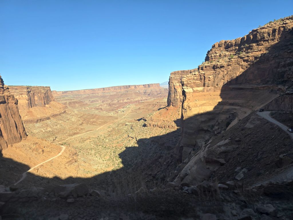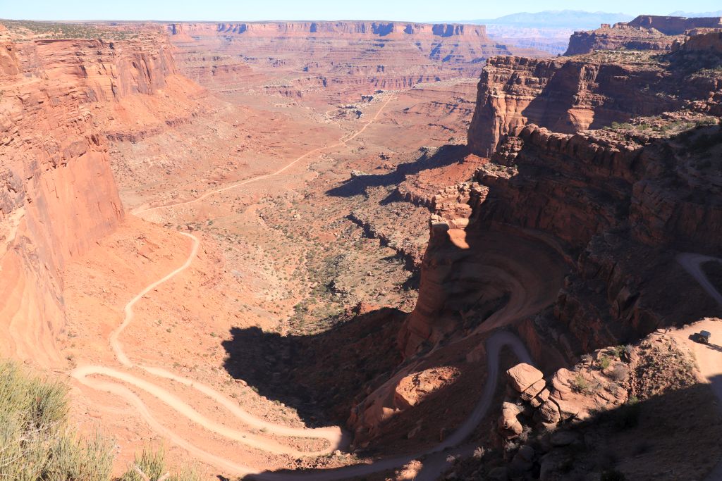 Bis zum Parkeingang und dem Besucherzentrum waren es noch einige Kilometer zu fahren. Danach fuhren wir noch ein weiteres Stück zum Aussichtspunkt der Shafer Trail Road.