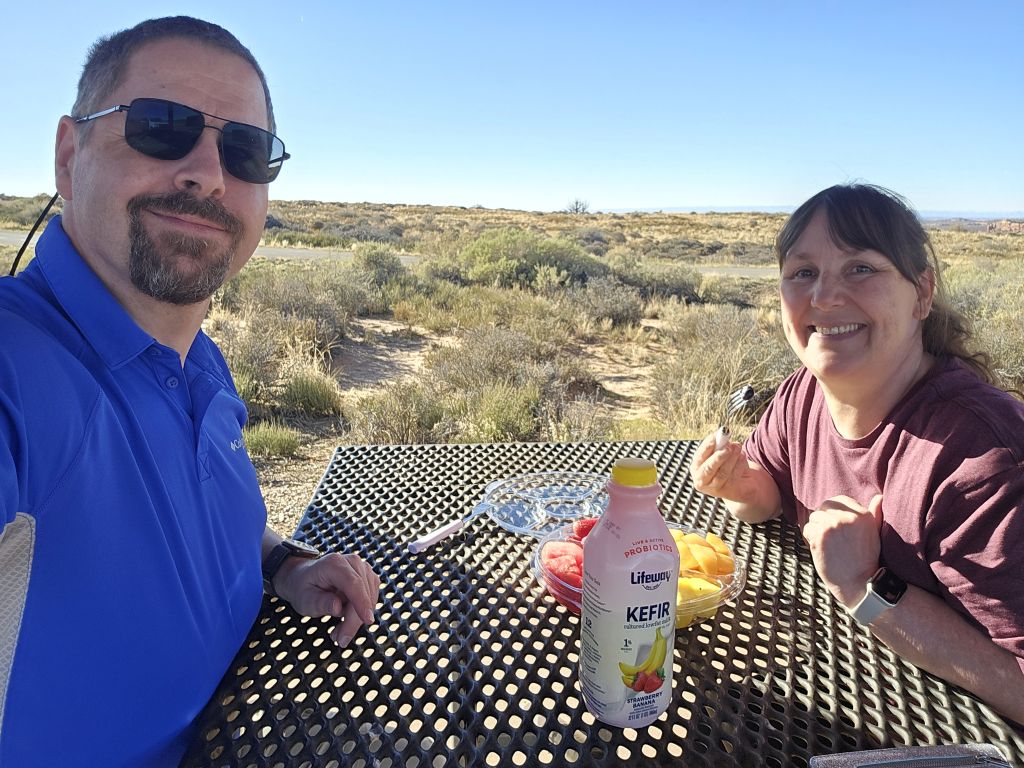 Jetzt fuhren wir mit knurrendem Magen zum Besucherzentrum und machten an einem Picknicktisch unser „Mittag“ – gegen 16 Uhr.