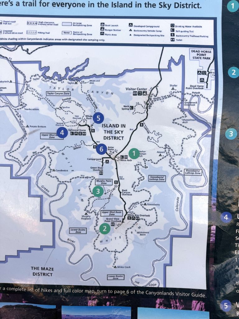 Allerdings standen wir vor einem Schild, das besagte, dass die White Rim Road nur mit Genehmigung befahren werden darf … Hatten wir nicht.