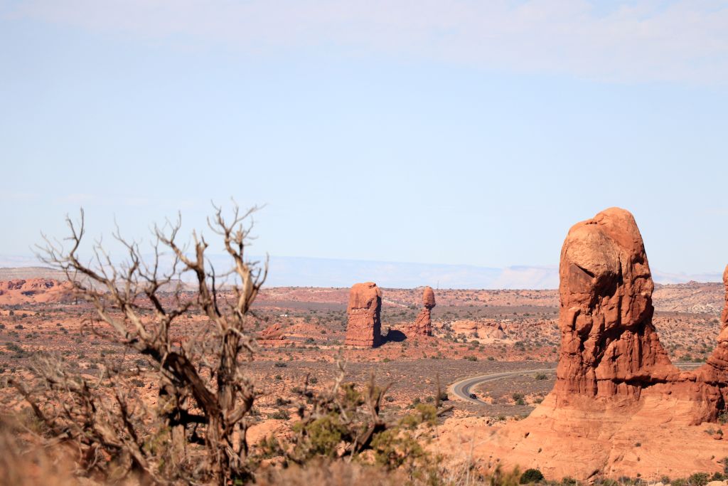 Eine lange Kolonne fuhr nun in den Park. Es löste sich ein wenig auf, trotzdem fuhren viele Fahrzeuge Richtung Delicate Arch mit. Als Notfallplan wollte ich ein Stück weiter fahren und ein paar Minuten später zurückkommen.