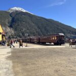 In Silverton war die Durango-Silverton-Schmalspurlok bereits im Bahnhof eingefahren – es war 13:30 Uhr, als wir ankamen. In etwas über einer Stunde wird sie wieder zurückfahren. Wir liefen eine kleine Runde, aber da wir hungrig waren, gab es heute einen Burger hier im Restaurant. Es war noch relativ viel los, aber wir fanden einen Platz – die meisten Bahnfahrenden hatten sicher schon ihr Mittagessen. Bis unsere Bestellung aufgerufen wurde, dauerte es trotzdem noch einen Moment. Wir aßen draußen unter einem kleinen Zelt – die Sonne war so stark, dass es zu warm wurde, obwohl die Umgebungstemperatur keine 10 °C betrug.