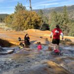 Kurz vor Durango gab es eine heiße Quelle (Pinkerton Hot Spring) – das wussten wir, da wir sie von unserer Tour 2019 kannten. Wir ahnten nur nicht, wie kurz vor Durango sie war. Wir rechneten eigentlich mit einem Hinweisschild – das gab es nicht, daher fuhren wir auch vorbei, sahen sie aber. Ich musste nur kurz eine Möglichkeit zum Wenden finden. Nicht weit danach fand ich eine.