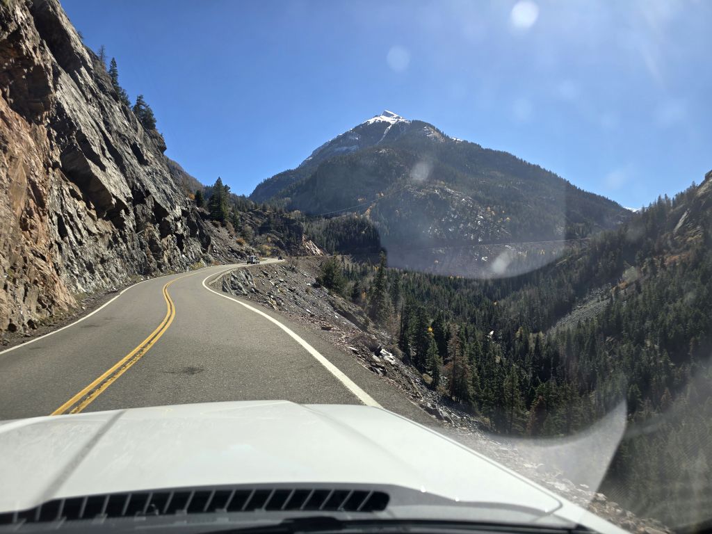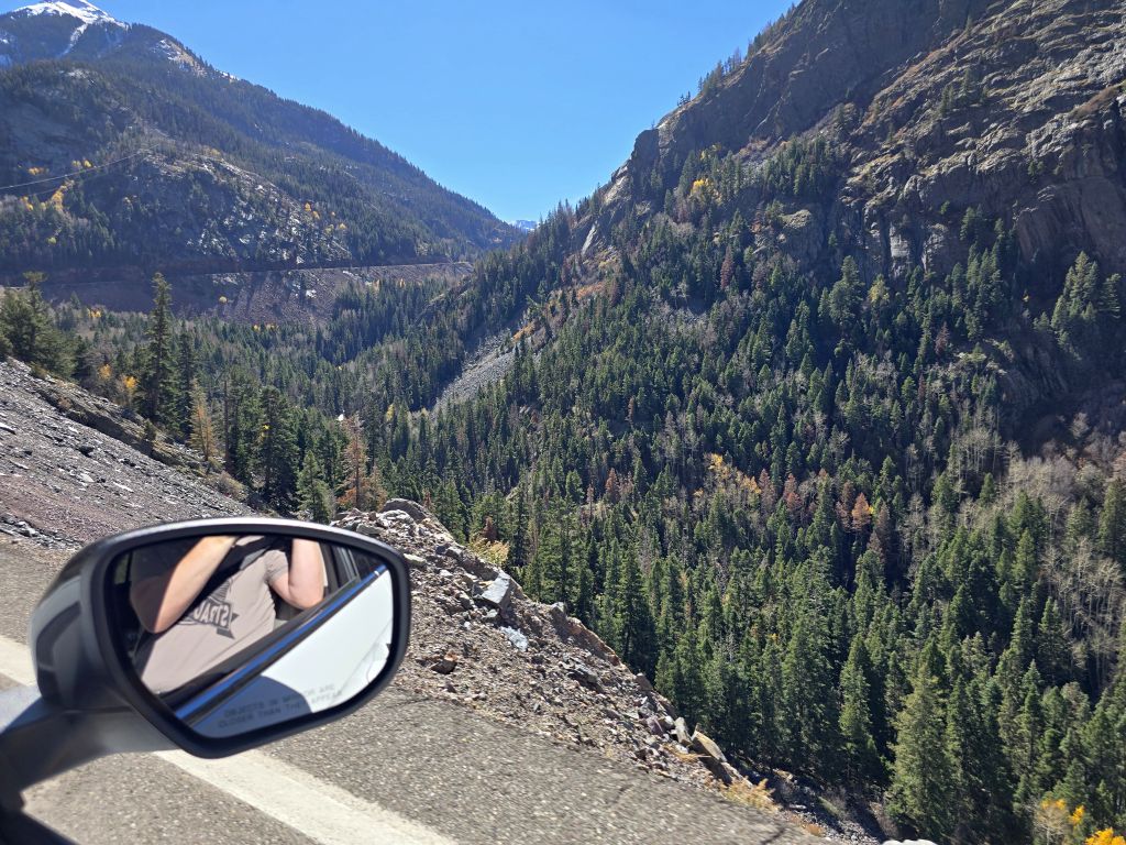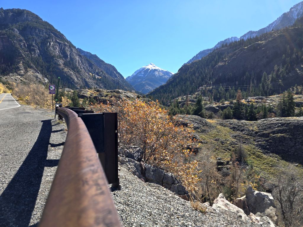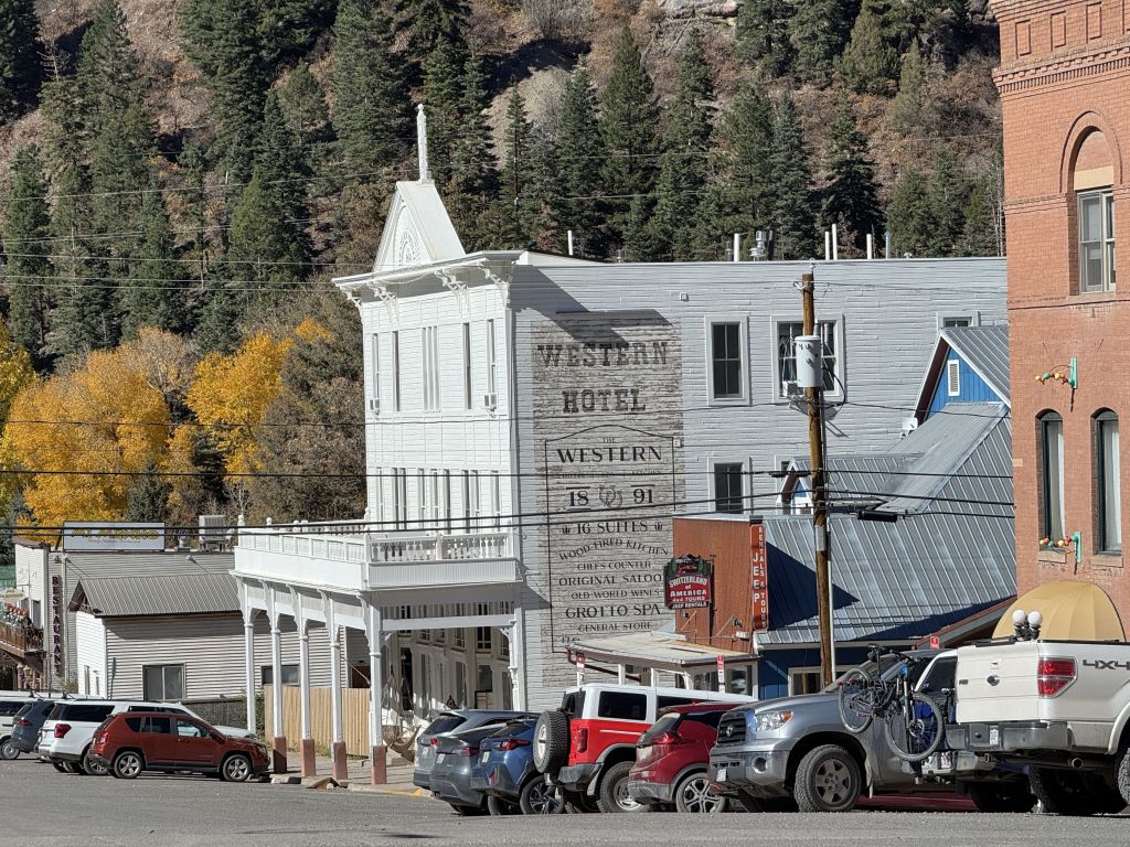 Erste Station ist Silverton – na ja, mit Unterbrechung in Ouray, dem kleinen Goldgräberstädtchen mit dem Western-Charme direkt am Highway 550. Wir liefen die Main Street einmal auf und ab. Viele Fotomotive später kamen wir wieder am Auto an. Weiter ging es bis zum nächsten Aussichtspunkt etwas oberhalb von Ouray – es geht nun richtig hoch, bis auf 3380 m.