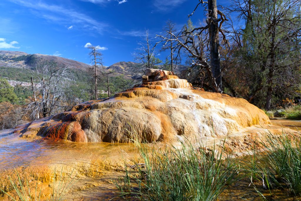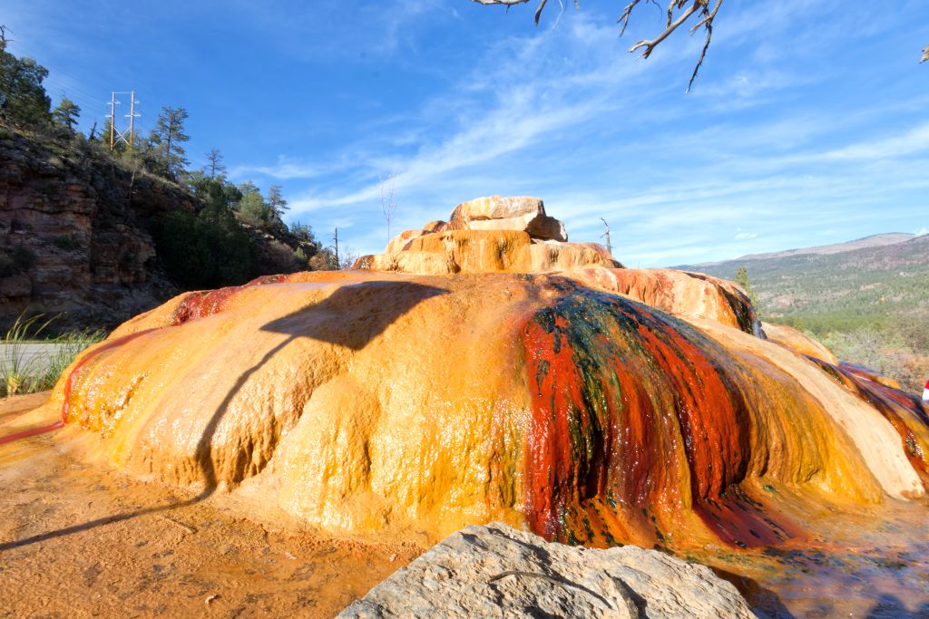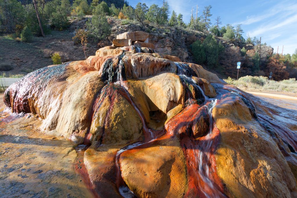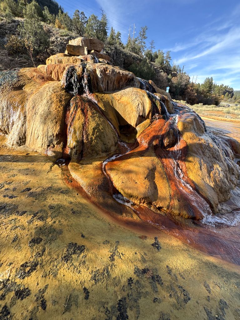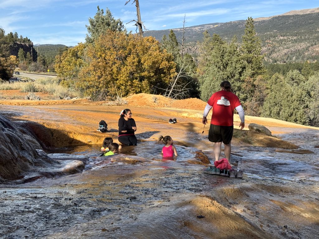 Kurz vor Durango gab es eine heiße Quelle (Pinkerton Hot Spring) – das wussten wir, da wir sie von unserer Tour 2019 kannten. Wir ahnten nur nicht, wie kurz vor Durango sie war. Wir rechneten eigentlich mit einem Hinweisschild – das gab es nicht, daher fuhren wir auch vorbei, sahen sie aber. Ich musste nur kurz eine Möglichkeit zum Wenden finden. Nicht weit danach fand ich eine.