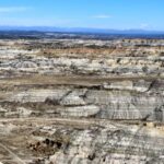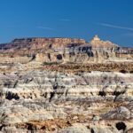 Der Angel Peak Badlands Overlook ist ein kleiner Parkplatz mit Picknickbereich, der einen Blick auf den Angel Peak bietet – eine Felsspitze, die bis auf 2300 m (knapp 7000 Fuß) Höhe reicht.