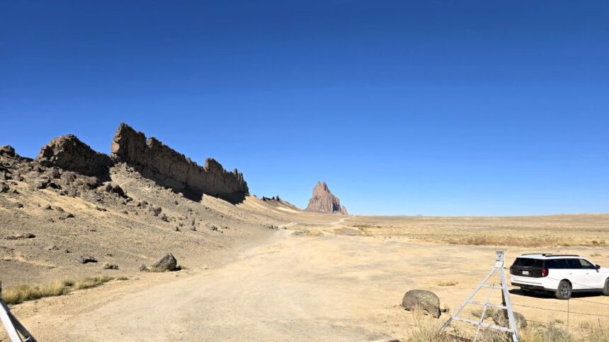 Hier kamen wir direkt am Shiprock vorbei und an der Magma-Wand – Reste eines Magma-Flusses, die über Millionen Jahre übrig blieben, als das restliche Plateau durch Erosion abgetragen wurde.