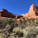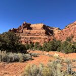 Abwärts fuhren wir wieder zwischen den geliebten roten Sandsteinfelsen hinunter.