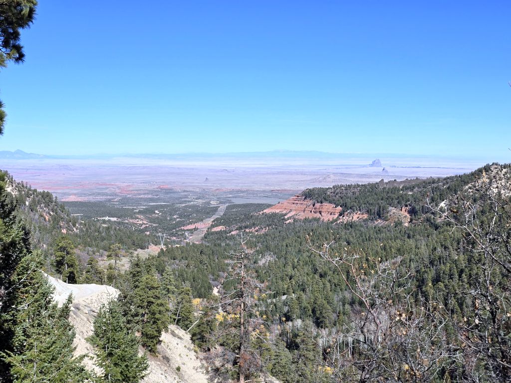 Oben angekommen, schauten wir uns um. Leider war er total vermüllt. Der Wind war zwar noch kühl, aber deutlich weniger stark als bei Shiprock. Wir machten ein paar Fotos vom Shiprock hier oben und fuhren weiter. Bis nach Chinle waren es nur 40 Minuten.