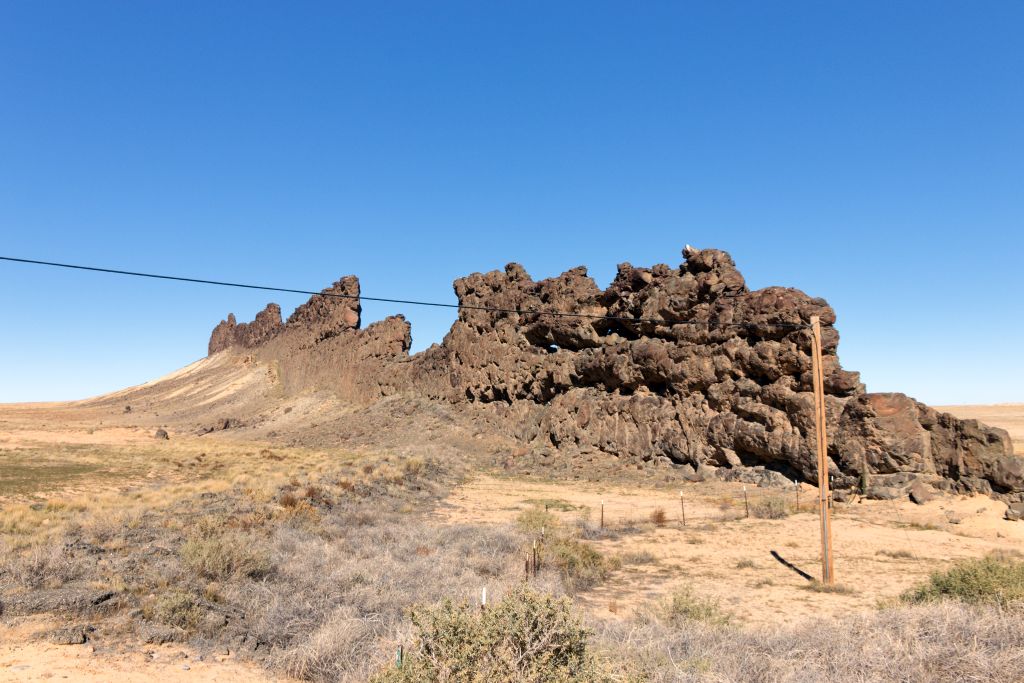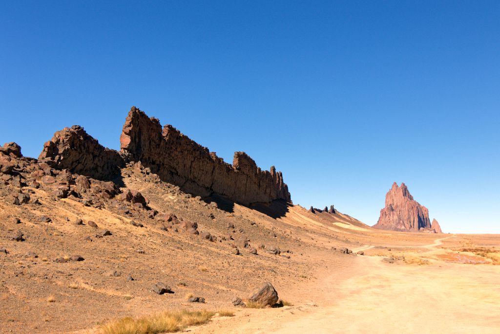 Hier kamen wir direkt am Shiprock vorbei und an der Magma-Wand – Reste eines Magma-Flusses, die über Millionen Jahre übrig blieben, als das restliche Plateau durch Erosion abgetragen wurde.