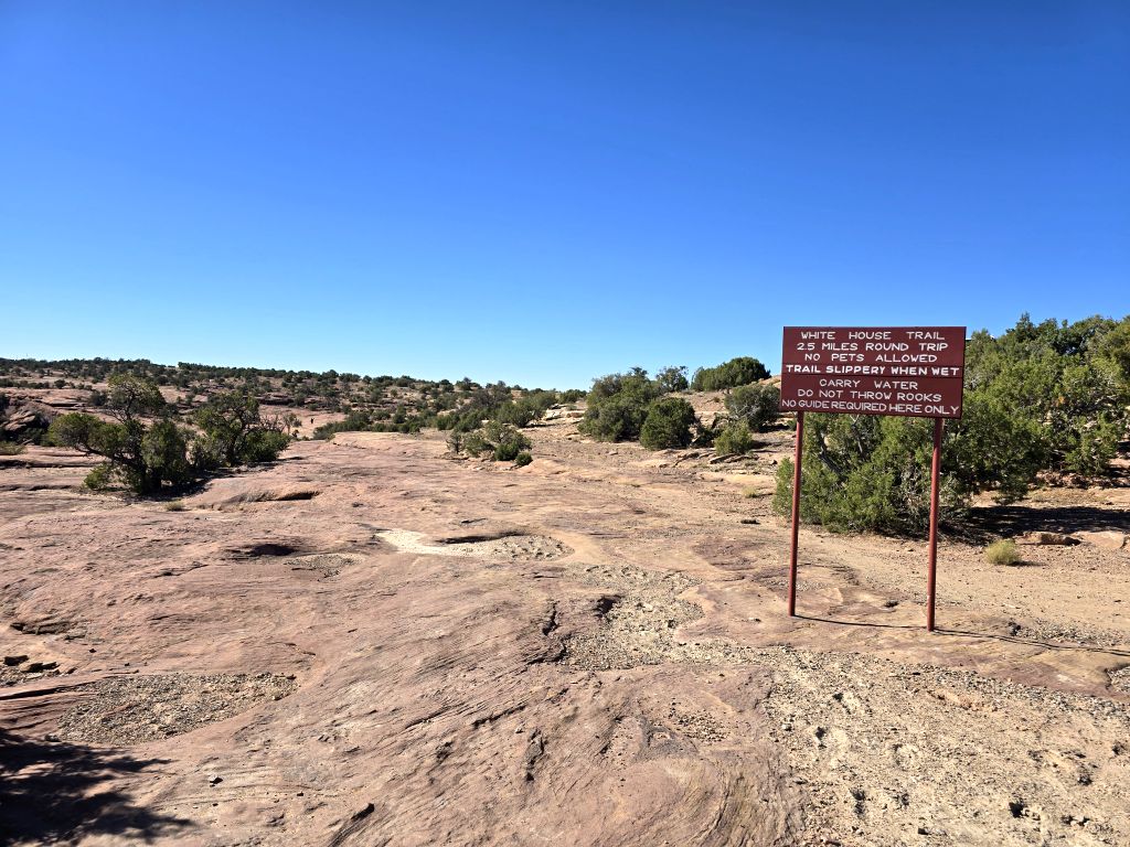 Wir folgten der Dirt-Road. Nicht sehr viel später erreichten wir das Ende der Straße (an einem geschlossenen Tor). Rechts vom Wash war aber die Ruine des White House (nicht das in Washington D.C. 🤪) zu sehen. Also waren wir falsch gegangen – der Pfad am Zaun wäre es gewesen.